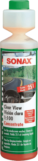Highly concentrated cleaning additive for the windscreen washer system in summer. Makes 25 litres of cleaning fluid. Removes insects, oil, grime, silicone and dangerous glare and lubricating films. Plastic compatible – does not cause stress cracks and blind spots on headlight diffusers. Also suitable for high-quality LED as well as Xenon headlights and plastic diffusers in clear glass look. Suitable for fan nozzles. Thanks to the anti-limescale effect, it can be mixed with tap water of all degrees of hardness. With a fresh fragrance.